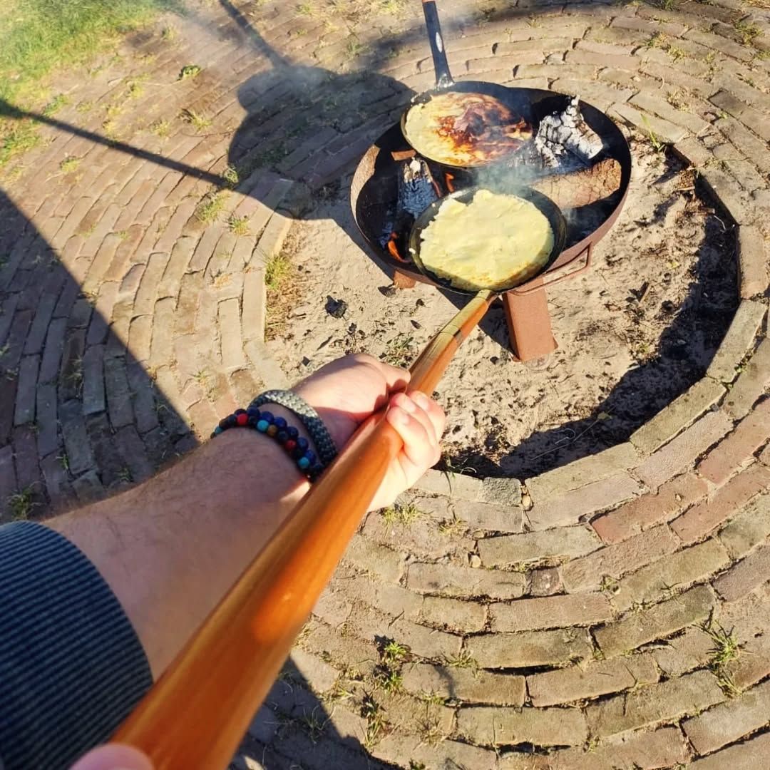 Kies je favoriete toppings, draai je pannenkoek boven de vlammen en geniet samen van een warm, ambachtelijk moment in de buitenlucht.